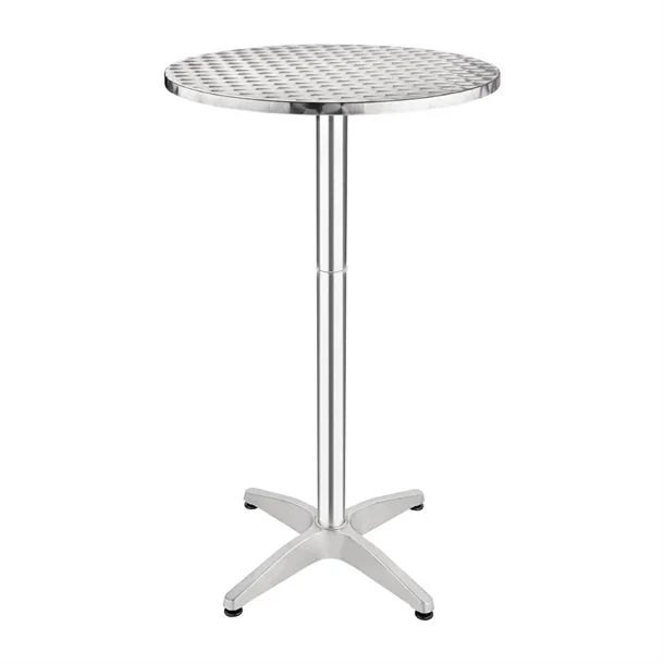 Round Cocktail table with heavy duty metal base and adjustable height.